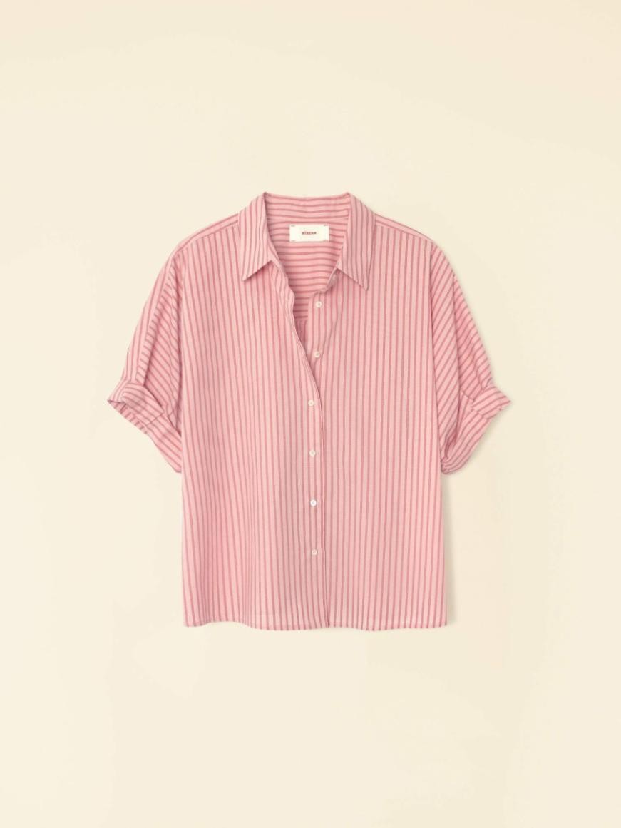 احصل على قميصك المخطط. قميص تيدي مُجدد هذا الموسم بخطوطه القلمية ثنائية اللون المصبوغة بالغزل. قميص تيدي سهل القص، بأزرار أمامية، بقصة مربعة، وأكمام مطوية، ونير خلفي.