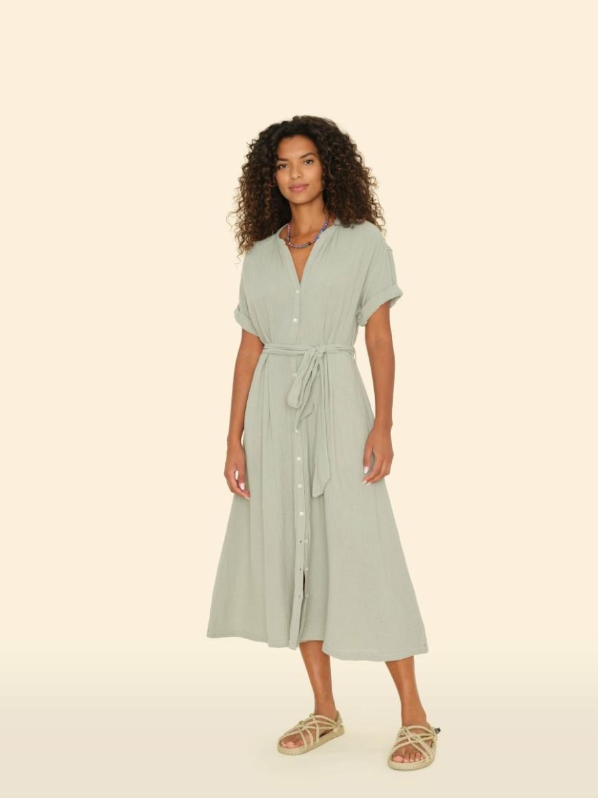 Nechte se unést. Tričko Cate je vyrobeno z naší prané oboustranné bavlněné gázy pro měkký a jemně zmačkaný pocit. Tento oblíbený kousek od Xireny má zapínání na knoflíky vpředu, áčkovou sukni, boční kapsy a nastavitelný pásek na zavazování.