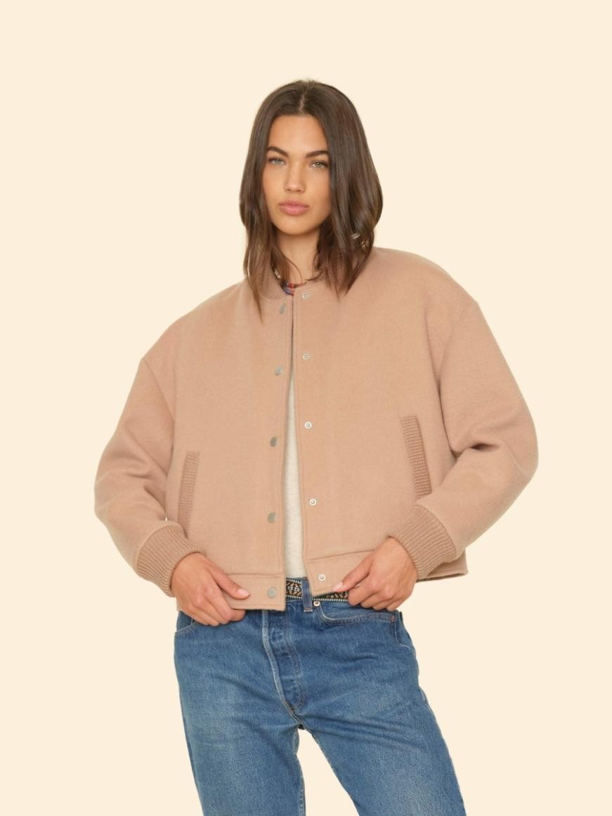 Titulní příběh. Braidy je naše nová bunda ze směsi vlny pro univerzitní tým s podšívkou z prošívaného matného saténu. Tato bunda má zapínání na kovové knoflíky vpředu a žebrovaný límec, lemované kapsy a manžety.