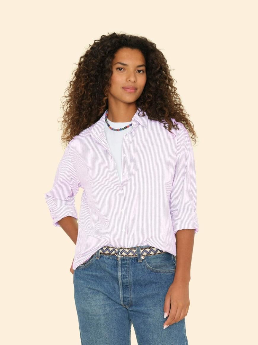 Damenhemden | Xirena Violett-Weißes Beau-Hemd