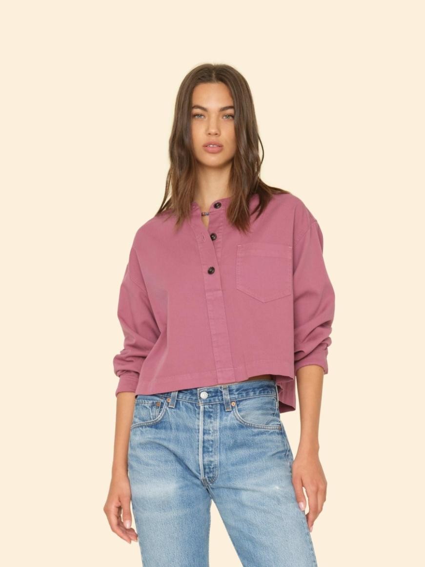 ¡Sé genial! Nicky es la novedad de esta temporada en nuestra sarga de algodón lavado vintage. Nicky es una blusa tipo popover con botones parciales al frente, botones de tigre con imitación de cuerno, bolsillo en el pecho izquierdo y canesú trasero plisado.