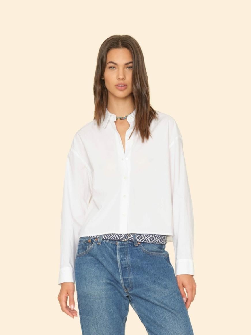 Is lú is mó. Nuashonraithe an séasúr seo inár bpoplín cadáis ghéar meánmheáchain, is léine ghearr le cnaipeanna tosaigh í Dawson le guaillí titime, muinchillí fad iomlána le cufaí cnaipe dúbailte pléadáilte, agus cuing cúil shracadh.