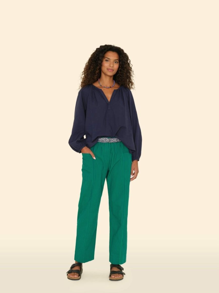 스트라이프를 완성하세요. 이번 시즌 제이크 팬츠는 원사 염색 투톤 펜슬 스트라이프로 새롭게 선보입니다. 솔기 디테일, 옆면 패치 포켓, 벨트 고리가 있는 편안한 스트레이트 레그 팬츠입니다.