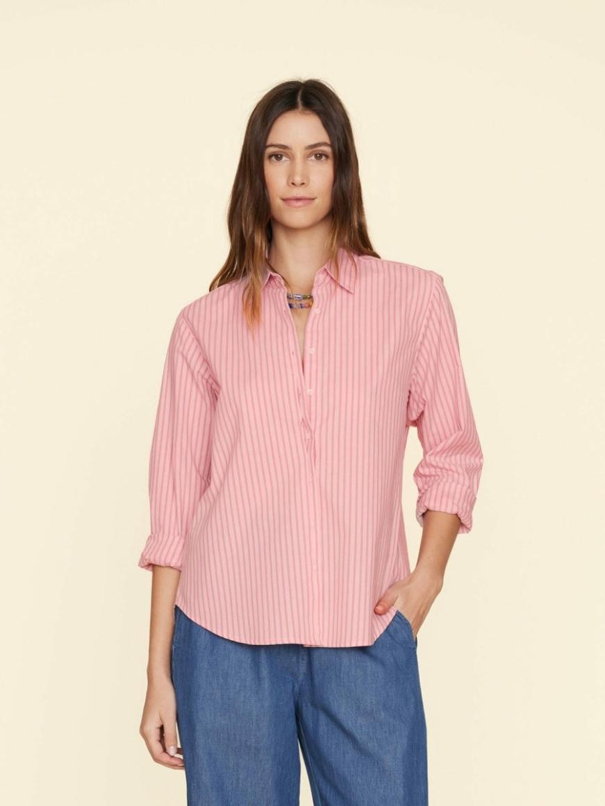 스트라이프를 완성하세요. Quinn은 이번 시즌, 원사 염색 투톤 펜슬 스트라이프로 새롭게 선보입니다. Quinn은 베스트셀러인 Beau 셔츠의 짧은 버전이며, 앞면에는 채닝 택 버튼이 있습니다.