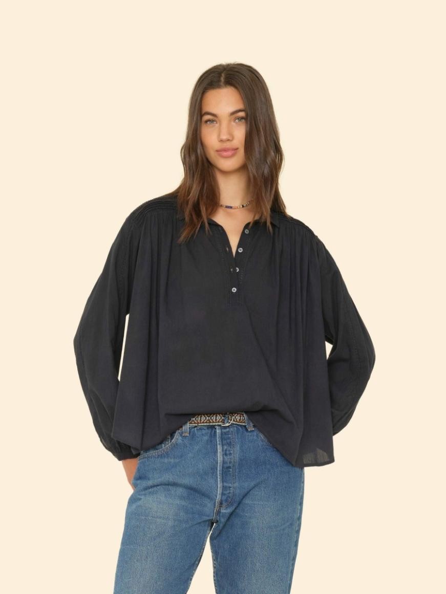 Prachtig plaatje. Daisy is nieuw dit seizoen in onze superfijne katoenen voile met een zachte touch. Daisy heeft een puntkraag, gedeeltelijke knoopsluiting, kanten inzetstukken op de knoopsluiting, mouwen en rug; een ronde zoom en een gesmokte rug met een geplooid schouderstuk.