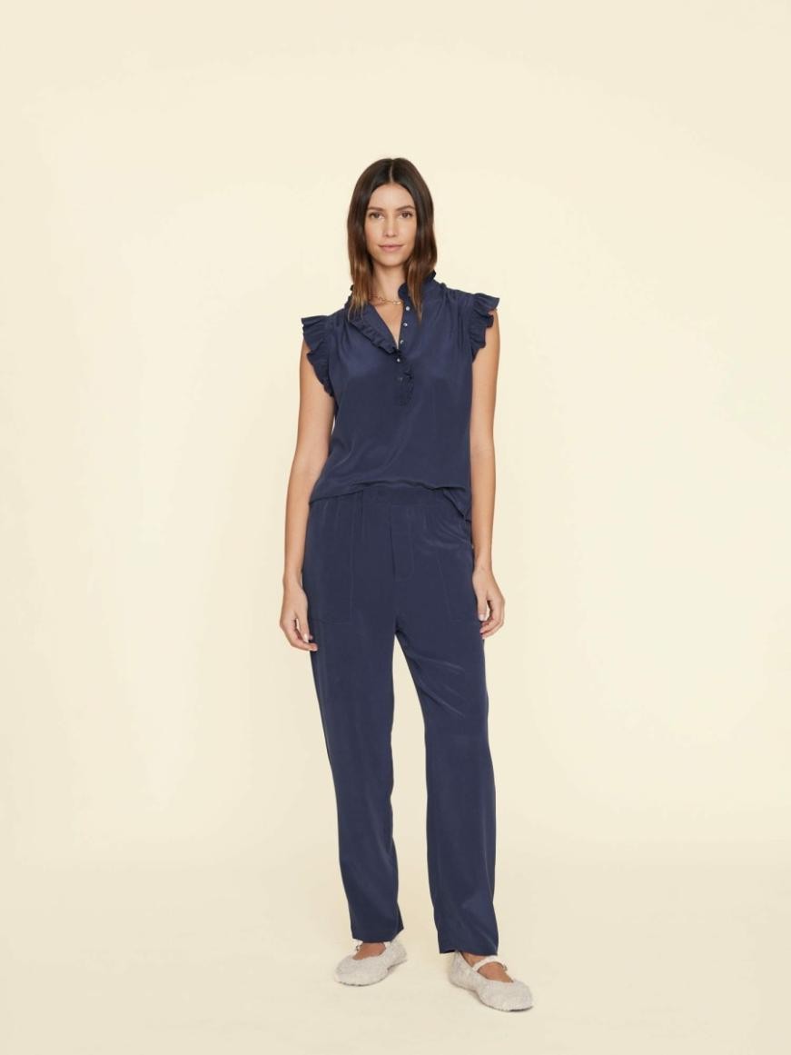Pantaloni și salopete pentru femei | Pantaloni de mătase Mercer bleumarin Xirena