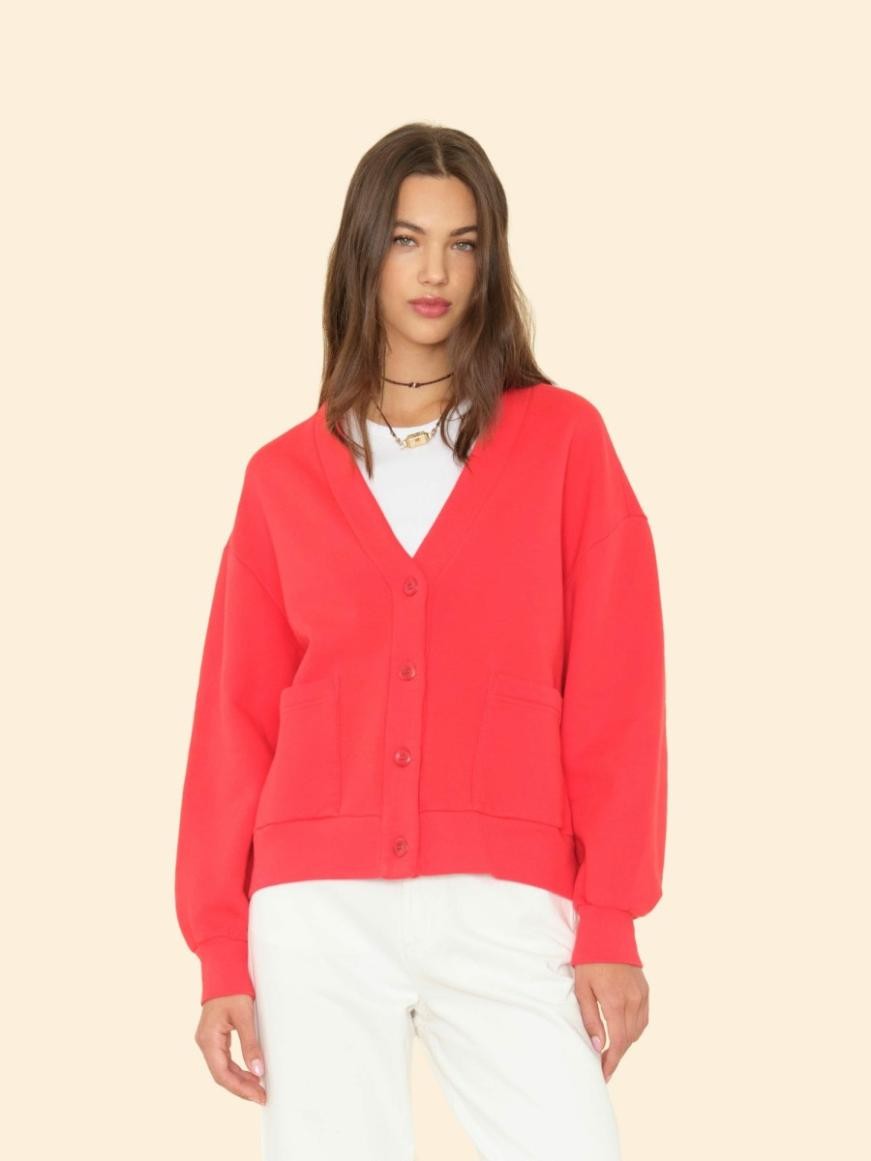 Gör ett (mysigt) uttalande. Benny är ny den här säsongen i vår ultramjuka fleece. Denna kofta med knappar framtill har en djup V-ringning, hellånga ärmar och två påsydda framfickor.