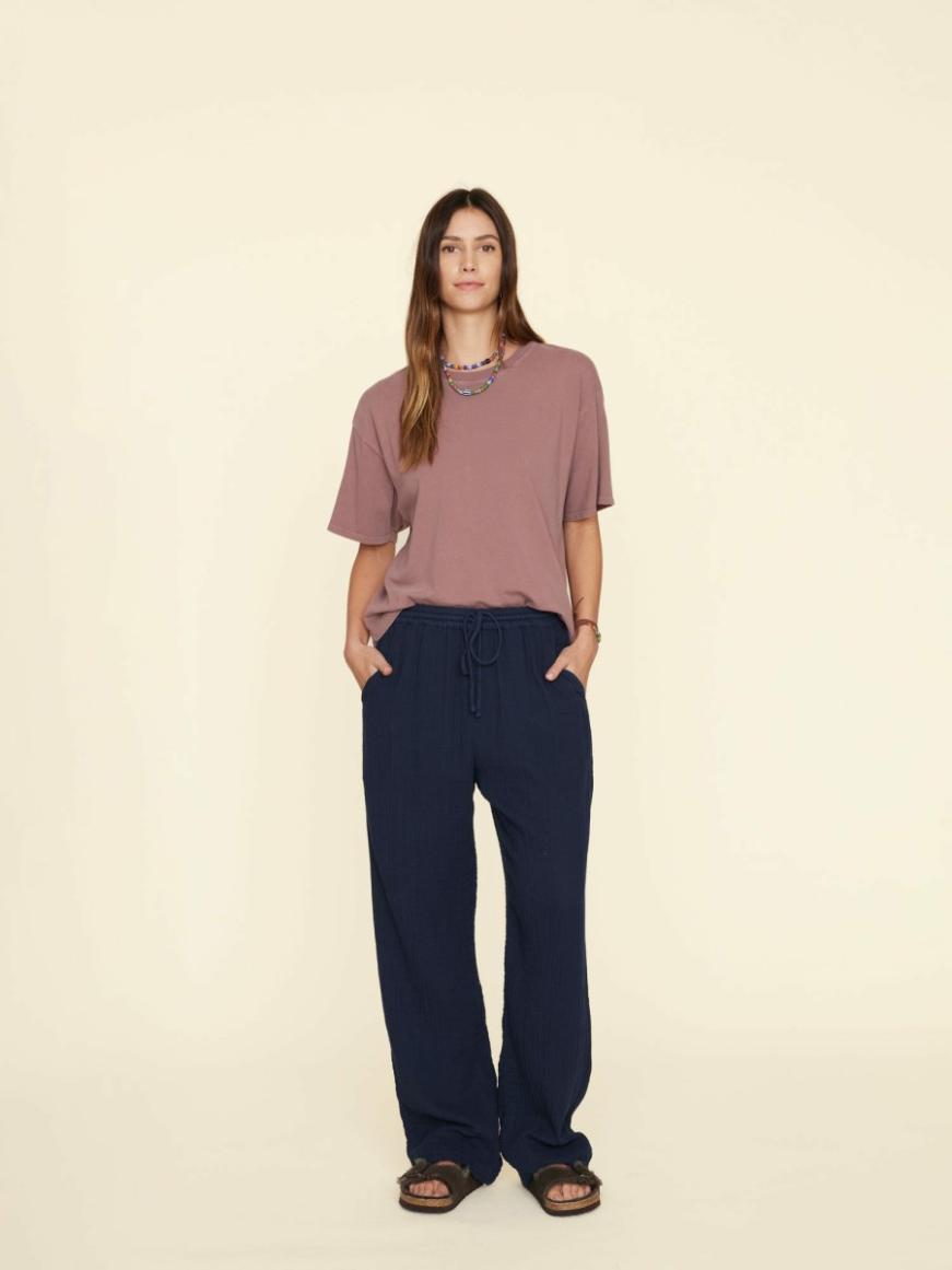 Easy does it. Dylan is made in our washed double faced cotton gauze for a soft, gently crinkled feel. Dylan is a straight leg pant with an elasticized drawstring waist and side seam pockets.