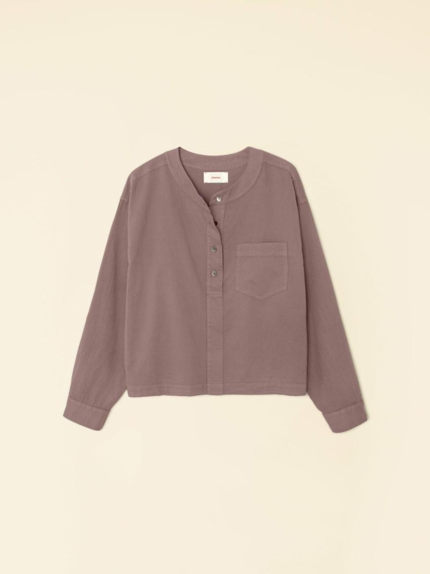 Be Cool. Nicky is new this season in our classic lightweight woven cotton poplin for a lived-in look and feel. Nicky is a popover top with a partial button-front, faux horn tiger buttons, left chest pocket, and pleated back yoke.