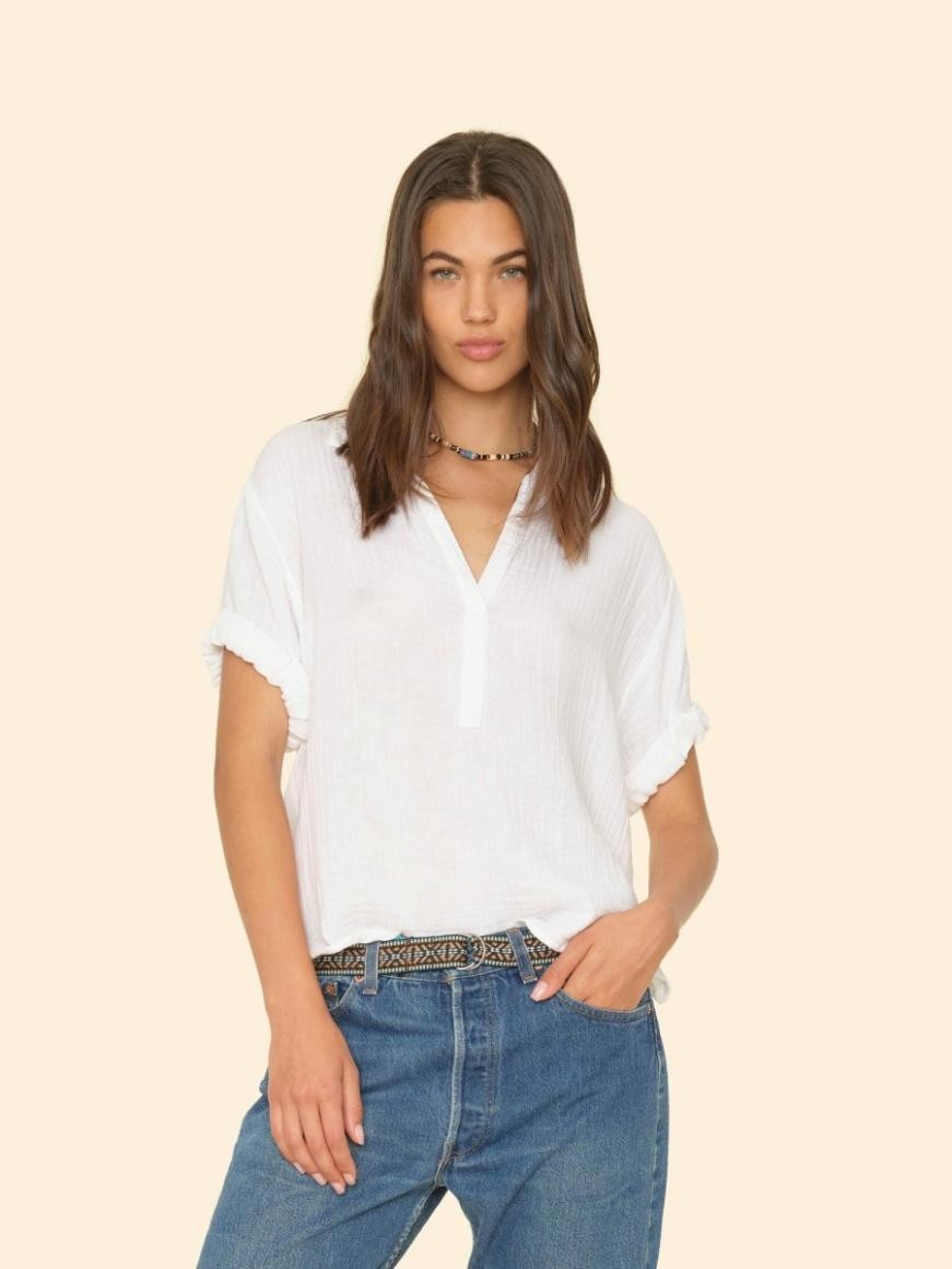 Cruz Control. Made in our washed double faced cotton gauze for a soft, gently crinkled feel, Cruz is an easy V-neck henley with rolled sleeves.
