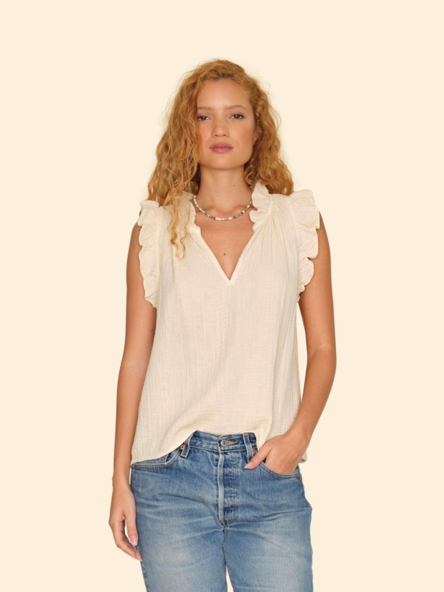 Ruffle Up. Bex is updated this season in our washed double faced cotton gauze for a soft, gently crinkled feel. This bestselling popover top has a deep V-neck, ruffle detailing and shirring throughout.